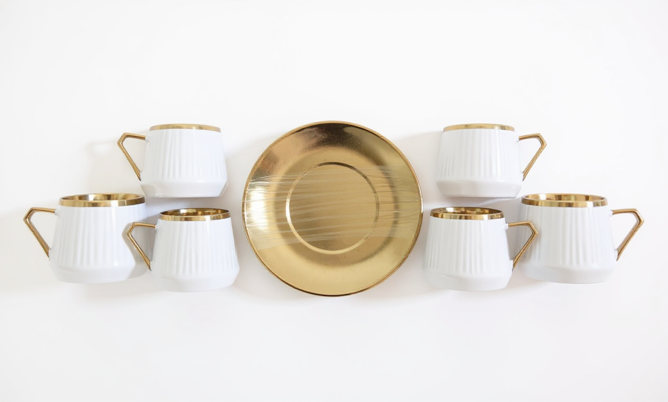 مجموعة فناجين القهوة والصحون - اختر اللون المطلوب